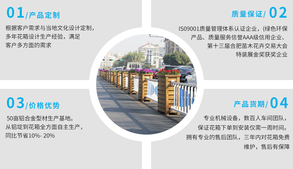 •       上海曦信環(huán)保科技股份有限公司成立于2013年,是一家專(zhuān)業(yè)的馬路花箱供應(yīng)商。本公司自成立以來(lái),經(jīng)歷了奠定基礎(chǔ),穩(wěn)步發(fā)展的過(guò)程。品牌已形成市場(chǎng)優(yōu)勢(shì),現(xiàn)正處于乘勢(shì)而上發(fā)展壯大的階段。創(chuàng)立先進(jìn)的經(jīng)營(yíng)理念和企業(yè)文化,生產(chǎn)經(jīng)營(yíng)規(guī)模不斷發(fā)展壯大。公司主要從事馬路花箱,花箱護(hù)欄,木紋鋁合金花箱,座椅花箱,鋁板花箱、不銹鋼花箱、鋁合金護(hù)欄、鋁合金葡萄架,公園座椅,戶外果皮箱垃圾桶、鋁合金葡萄架等金屬建材產(chǎn)品的生產(chǎn)和銷(xiāo)售...
